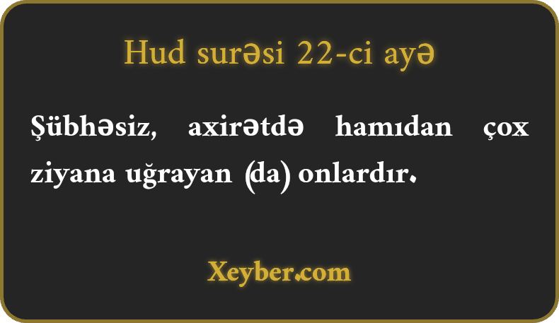 "Onlar, şübhəsiz, qiyamətdə fərdlərin ən ziyankarıdırlar.”