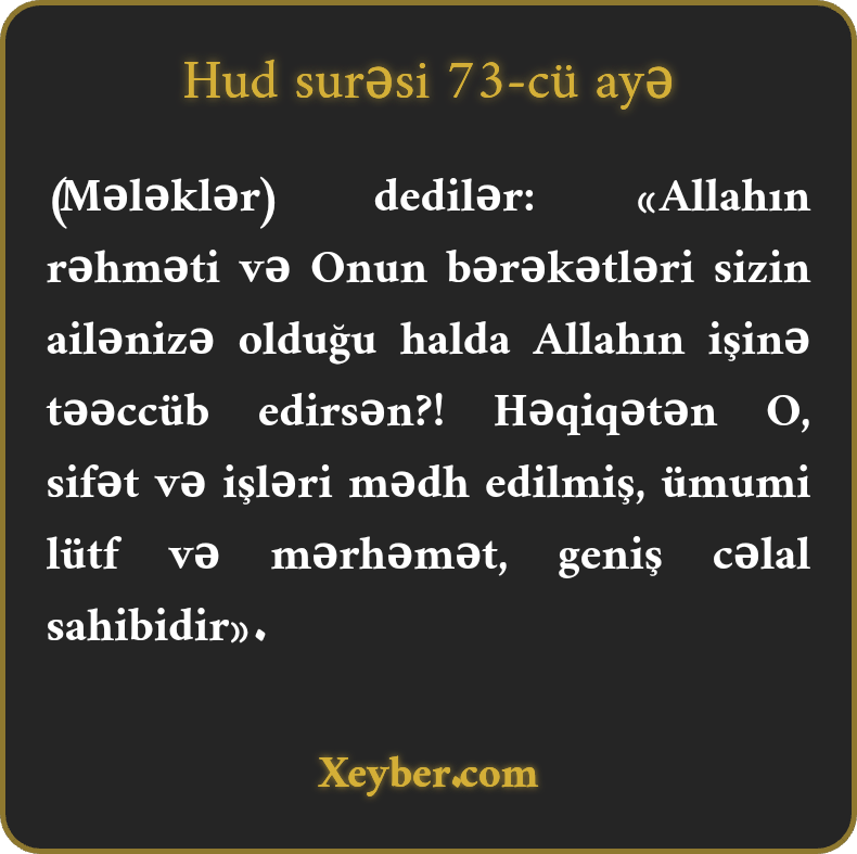 “(Mələklər İbrahimin zövcəsinə) dedilər: “Allahın işinə təəccübmü