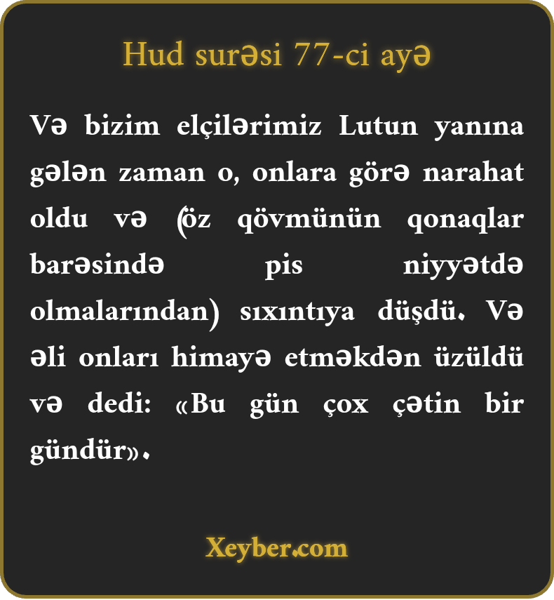 “Mələklərimiz Lutun sorağına gəldikləri vaxt onların gəlişindən qəmgin