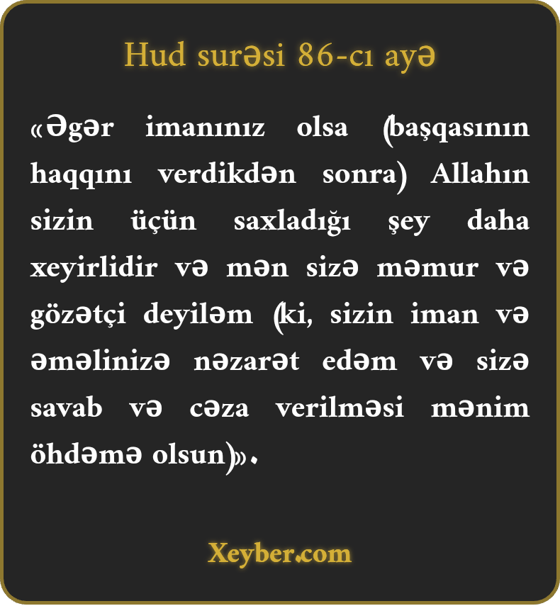 ◘“Bəqiyyətullah” dedikdə bu ayədə halal sərmayədən əldə olunmuş qazanc