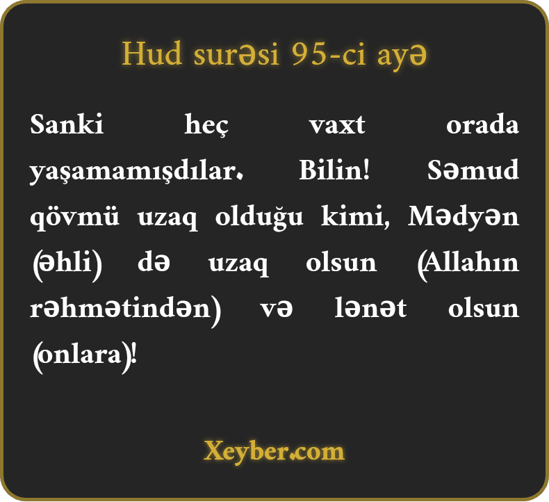 “(Mədyən kafirləri elə məhv oldular ki,) sanki heç vaxt həmin məntəqədə