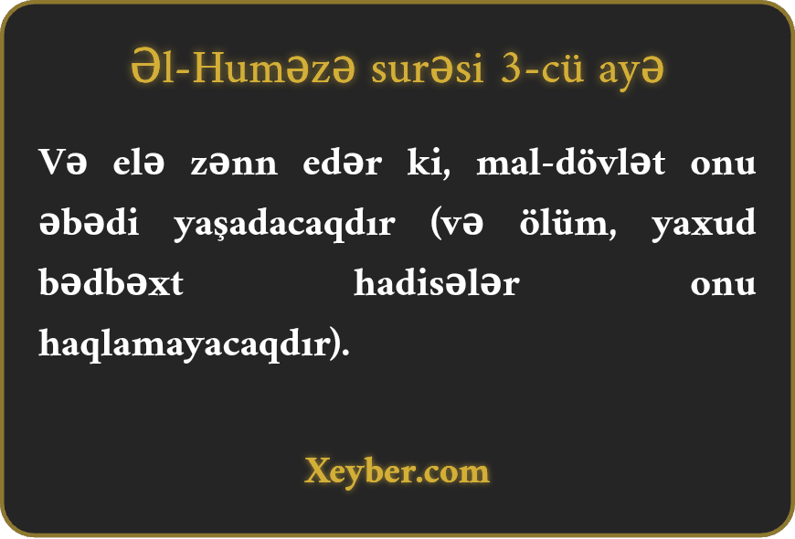 Əl-Huməzə surəsi 3-cü Ayəsinin Təfsirləri