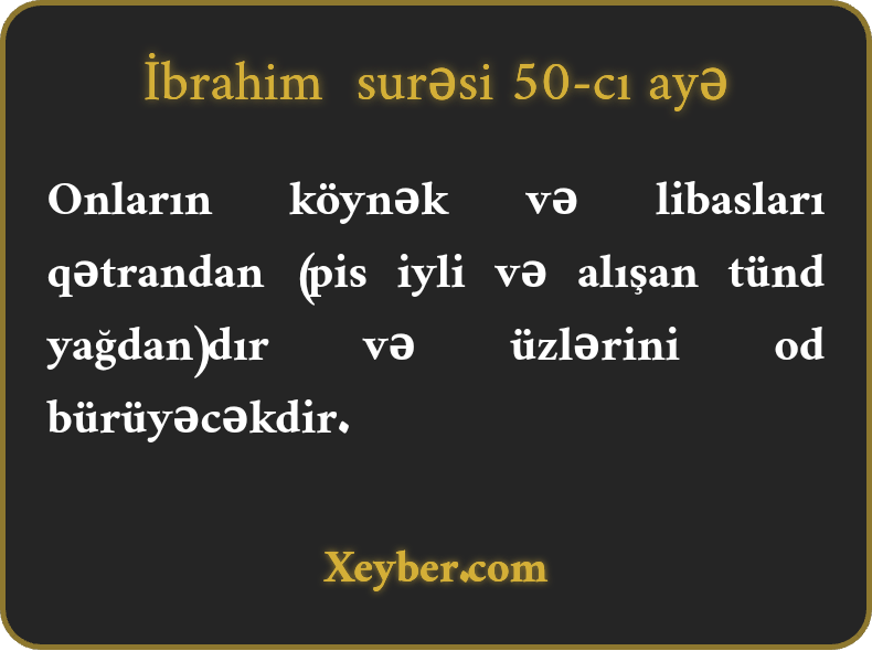 "Onların libasları qətrandır və üzlərini atəş bürümüşdür.”