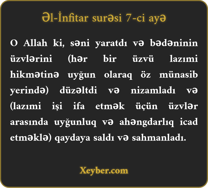 Əl-İnfitar surəsi 7-ci Ayəsinin Təfsirləri