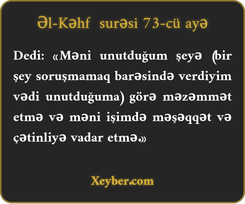 Əl-Kəhf surəsi 73-cü Ayəsinin Təfsirləri