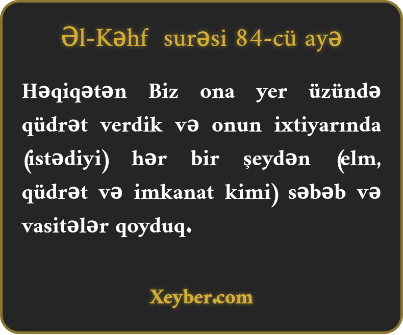 Əl-Kəhf surəsi 84-cü Ayəsinin Təfsirləri