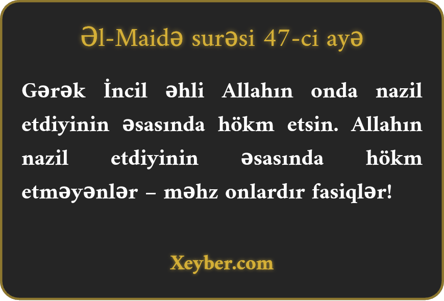 “İncil əhli Allahın o kitabda nazil etdiyi əsasında hökm etsin. O kəslər ki,