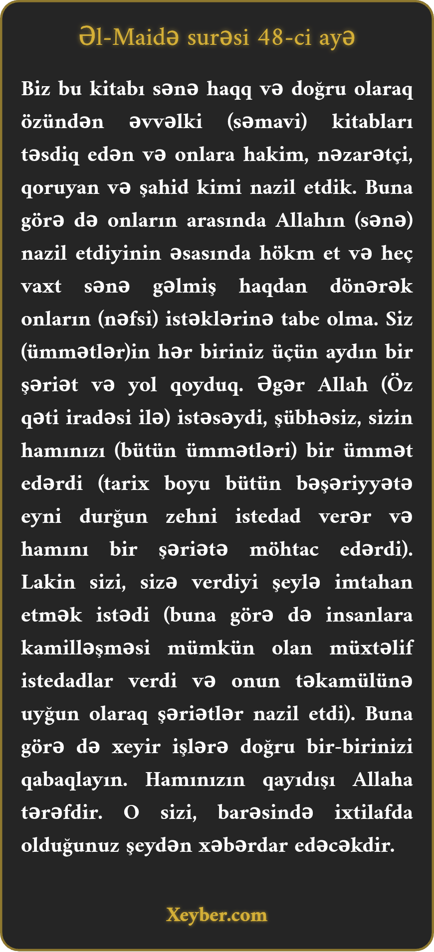 NUR TƏFSİRİ: Əl-Maidə surəsi / ayə 48