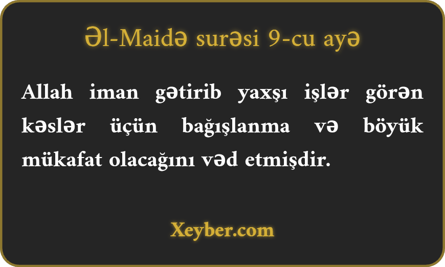 "Allah yalnız iman gətirib saleh işlər görənlərə bağışlanma və böyük mükafatlar vəd etmişdir.”