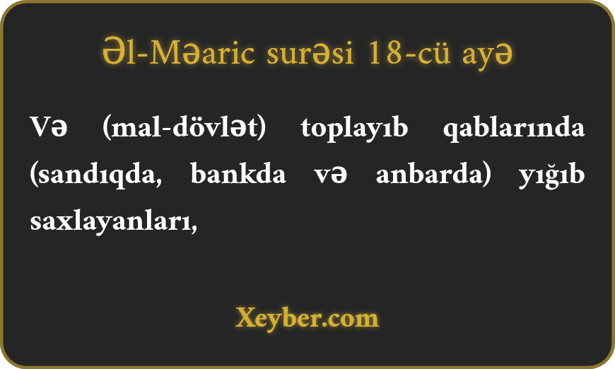 Və (mal-dövlət) toplayıb qablarında (sandıqda, bankda və anbarda) yığıb saxlayanları,
