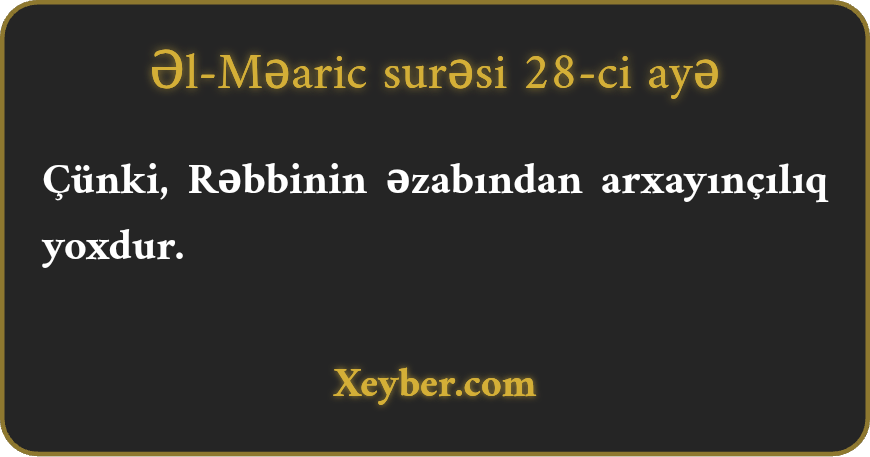 Çünki, Rəbbinin əzabından arxayınçılıq yoxdur.