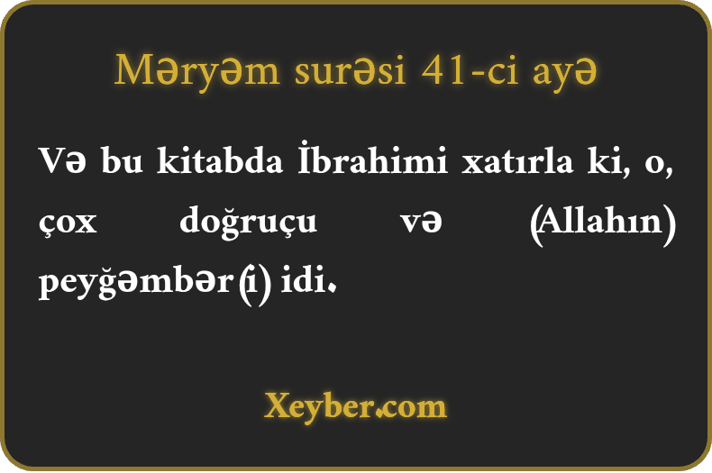 Və bu kitabda İbrahimi xatırla ki, o, çox doğruçu və (Allahın) peyğəmbər(i) idi.