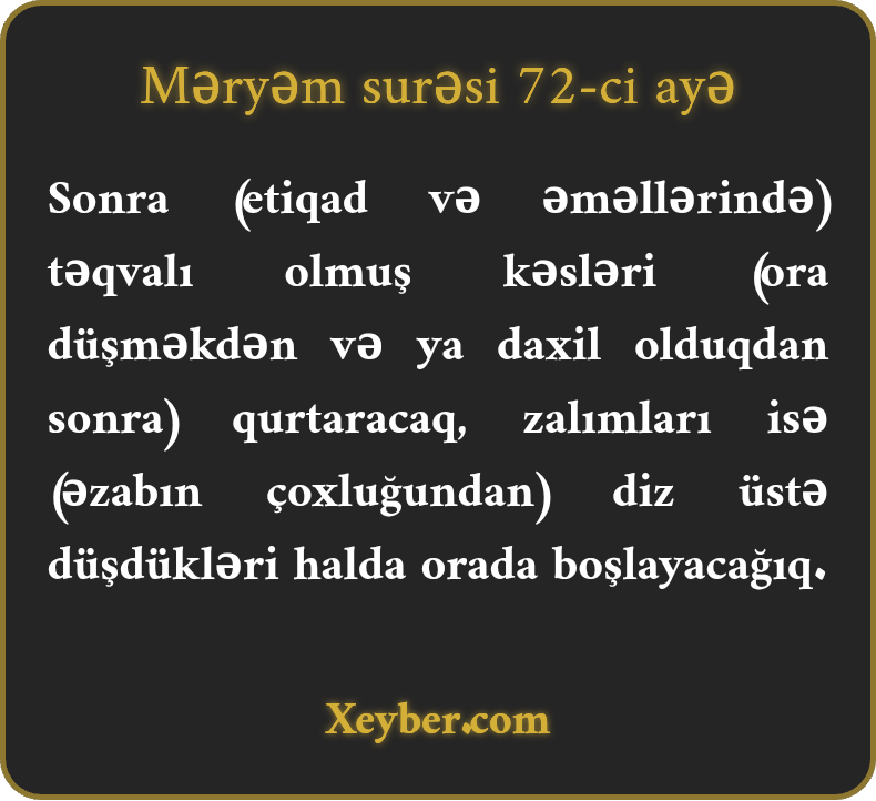 Məryəm surəsi - 72-ci Ayə