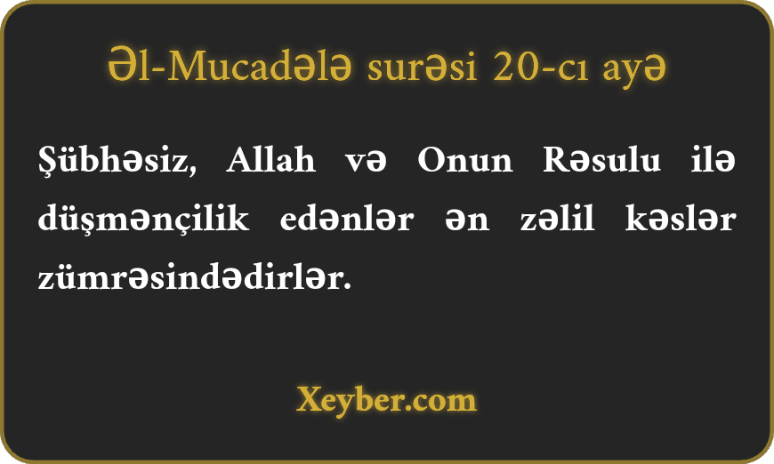 Şübhəsiz, Allah və Onun Rəsulu ilə düşmənçilik edənlər ən zəlil kəslər zümrəsindədirlər.