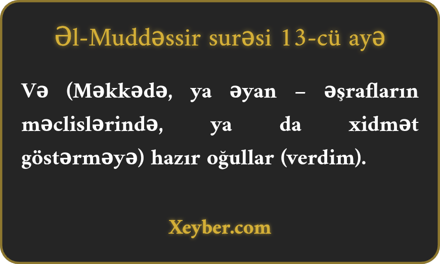 Əl-Muddəssir surəsi - 13-cü Ayə