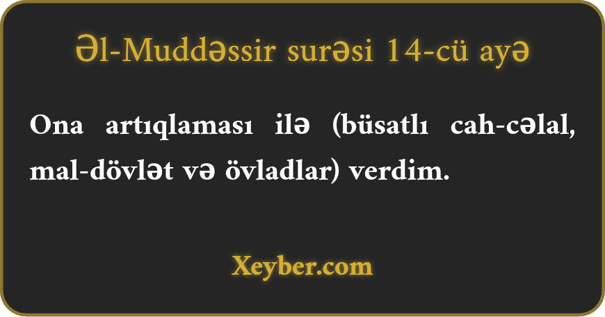 Əl-Muddəssir surəsi - 14-cü Ayə