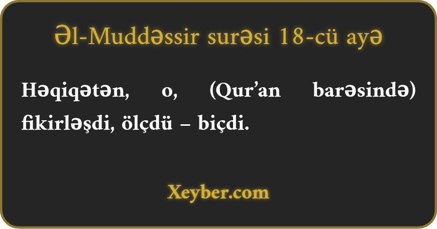 Həqiqətən, o, (Qur’an barəsində) fikirləşdi, ölçdü – biçdi.