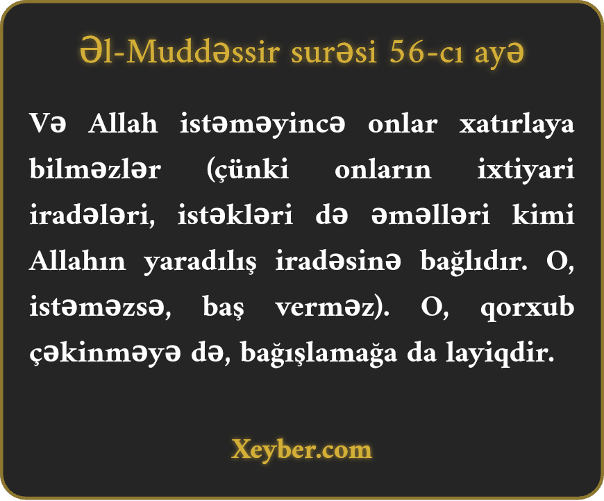 Əl-Muddəssir surəsi - 56-cı Ayə