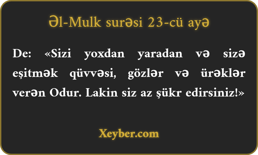 De: «Sizi yoxdan yaradan və sizə eşitmək qüvvəsi, gözlər və ürəklər verən Odur. Lakin siz az şükr edirsiniz!»