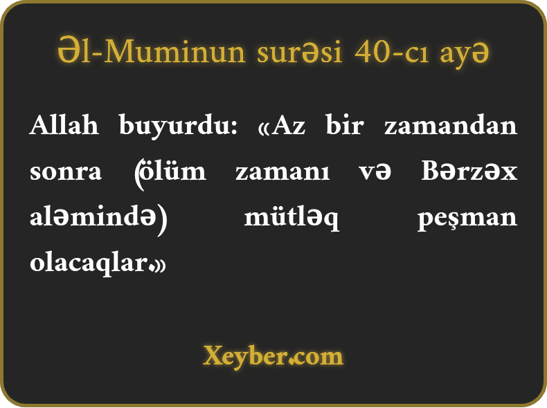 Allah buyurdu: «Az bir zamandan sonra (ölüm zamanı və Bərzəx aləmində) mütləq peşman olacaqlar.»