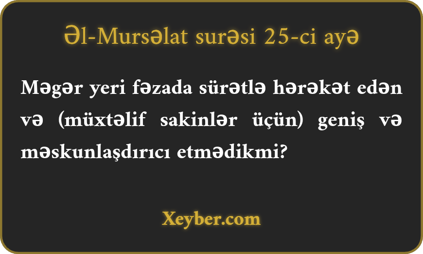 Məgər yeri fəzada sürətlə hərəkət edən və (müxtəlif sakinlər üçün) geniş və məskunlaşdırıcı etmədikmi?