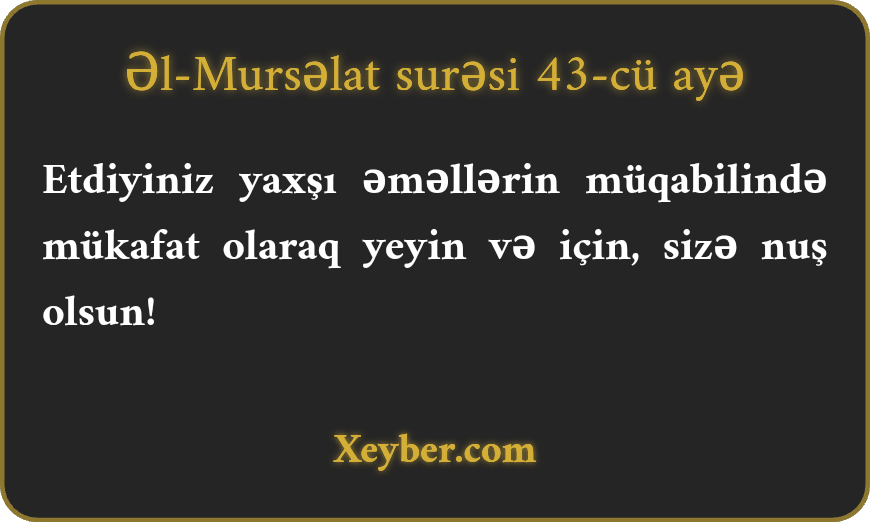 Etdiyiniz yaxşı əməllərin müqabilində mükafat olaraq yeyin və için, sizə nuş olsun!