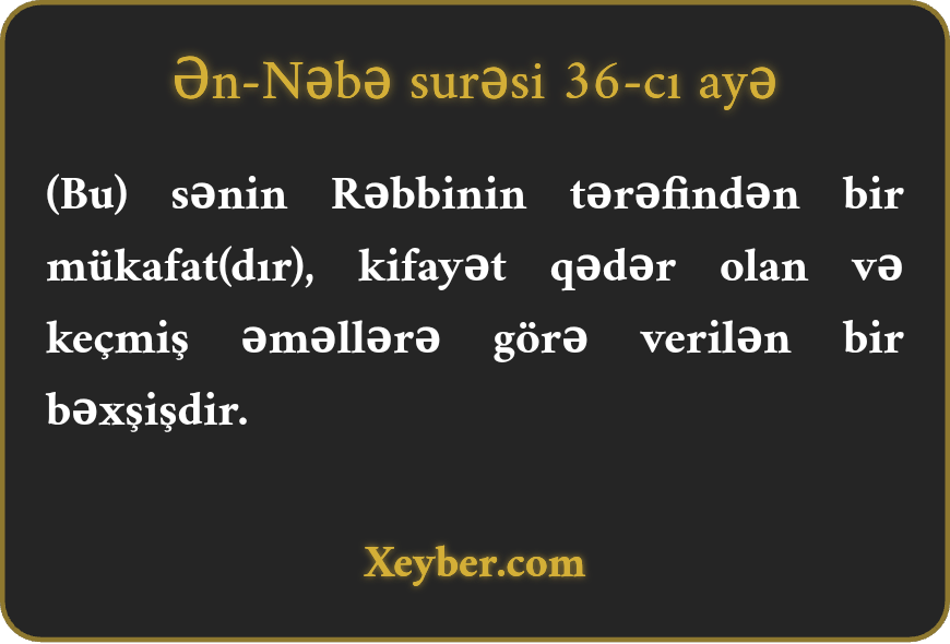 (Bu) sənin Rəbbinin tərəfindən bir mükafat(dır), kifayət qədər olan və keçmiş əməllərə görə verilən bir bəxşişdir.