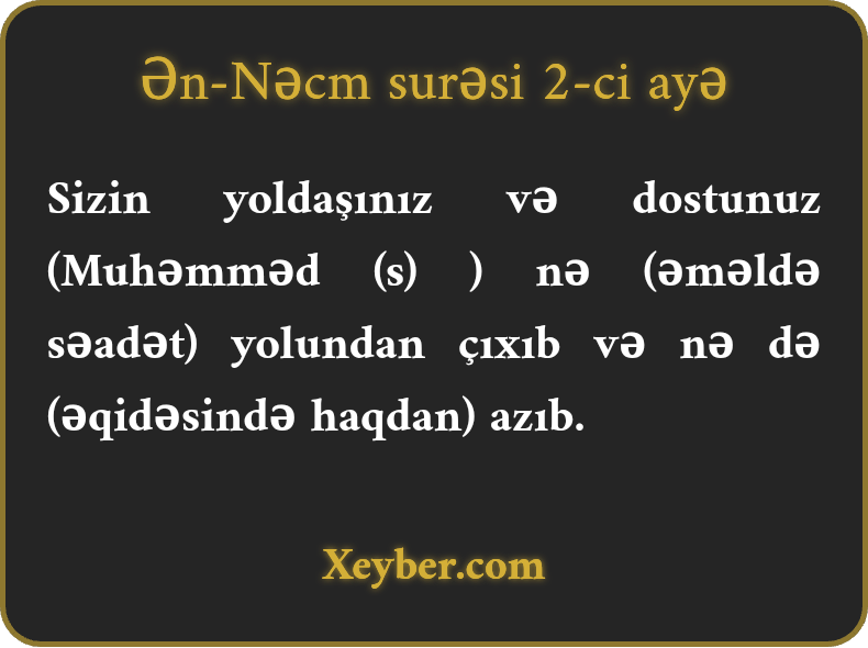 Sizin yoldaşınız və dostunuz (s">(Muhəmməd (s) ) nə (əməldə səadət) yolundan çıxıb və nə də (əqidəsində haqdan) azıb.