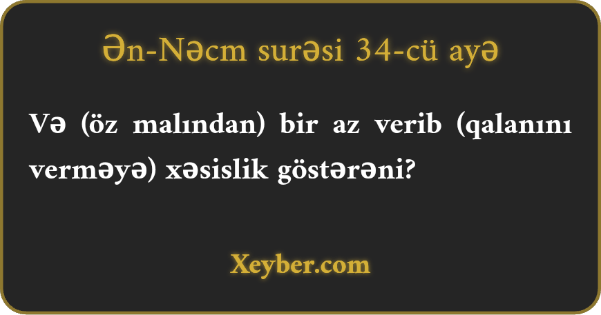 Və (öz malından) bir az verib (qalanını verməyə) xəsislik göstərəni?
