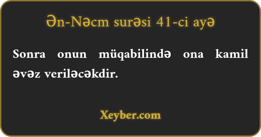 Sonra onun müqabilində ona kamil əvəz veriləcəkdir.