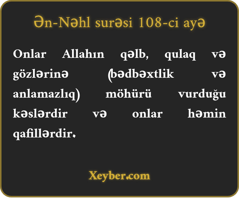"Onlar Allah tərəfindən qəlblərinə, qulaqlarına və gözlərinə möhür vurulanlardırlar. Onlar həmin qafillərdirlər.”