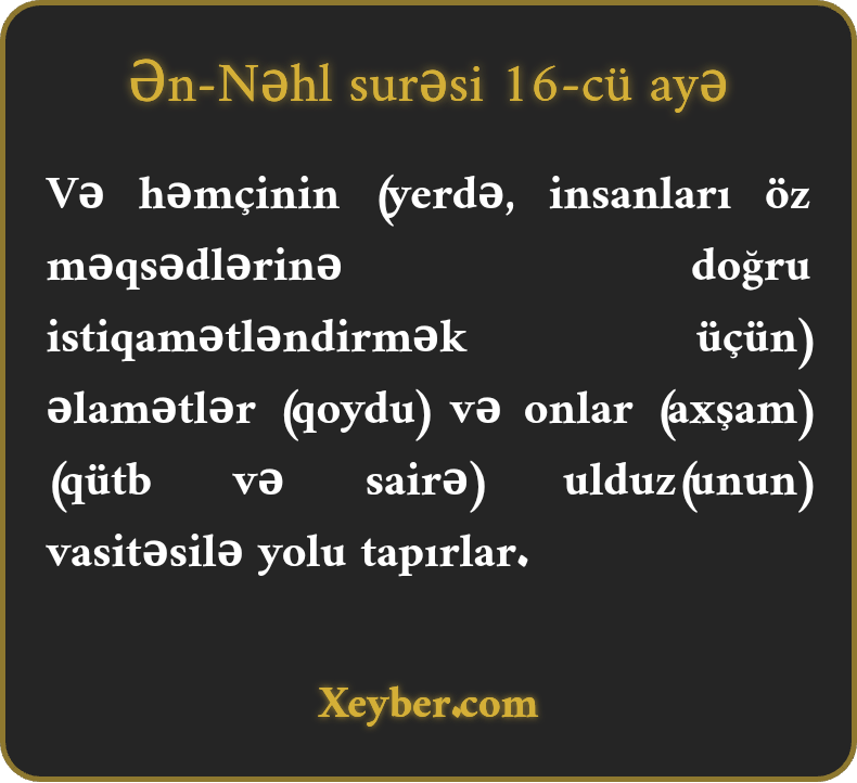 «Digər nişanələr (qərar verildi) və onlar ulduzlar vasitəsi ilə yol taparlar.»