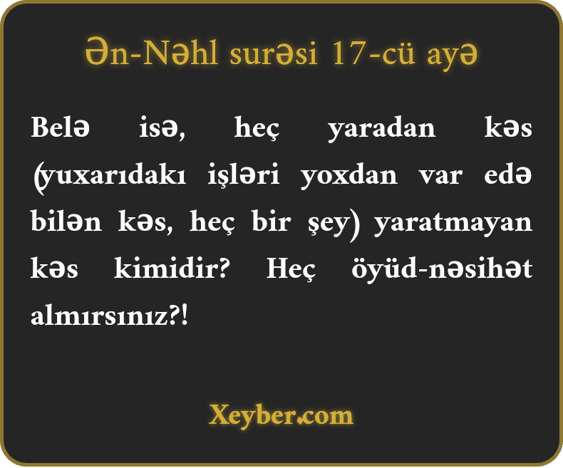 "Məgər yaradan yaratmayan kimidir? Yoxsa öyrənmir, öyüd götürmürsünüz?”