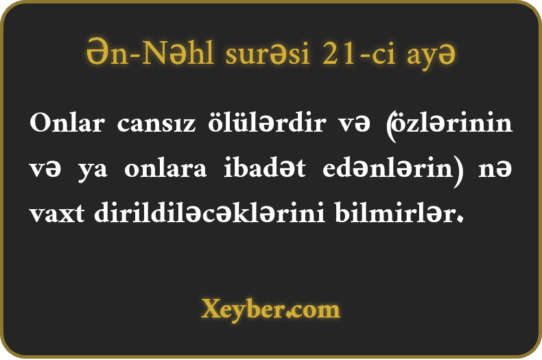 Cahil üçün məsələni təkrarlamaq lazımdır. Bu məqsədlə "yaratmamışlar” sözü ilə yanaşı "yaradılmışlar”, "ölüdürlər” sözü ilə yanaşı "diri deyildirlər” sözləri zikr olunmuşdur.