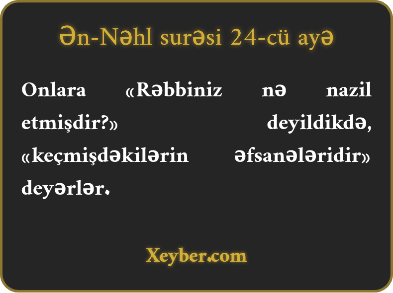 "Onlardan "Rəbbiniz nə nazil edib?” soruşulduqda "keçmişlərin əfsanələridir” deyə cavab verərlər.”