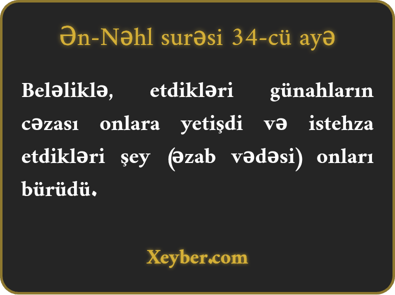 "Gördükləri pis işlərin cəzasına çatdılar, məsxərəyə qoyduqları (əzab) onları bürüdü.”