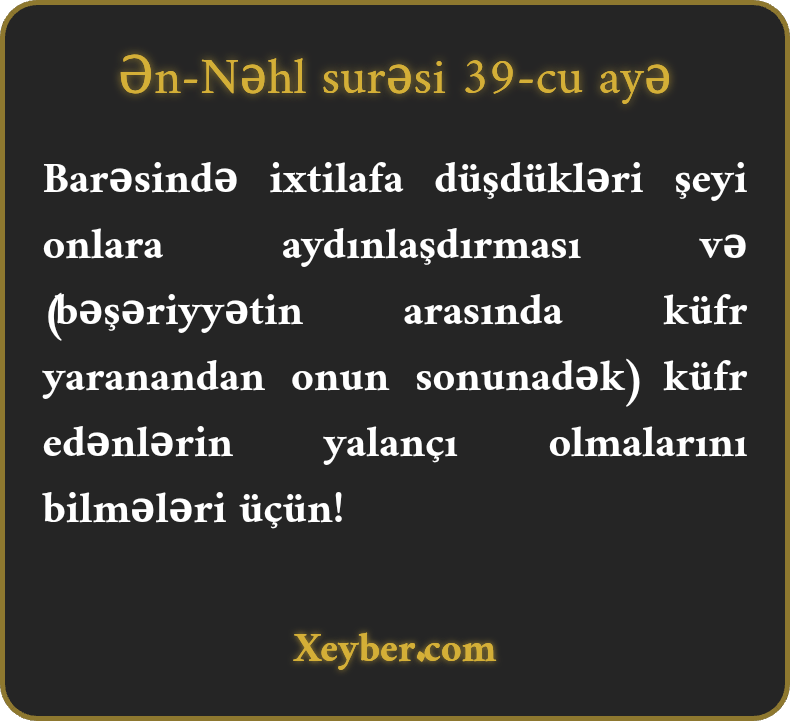 NUR TƏFSİRİ: Ən-Nəhl surəsi / ayə 39