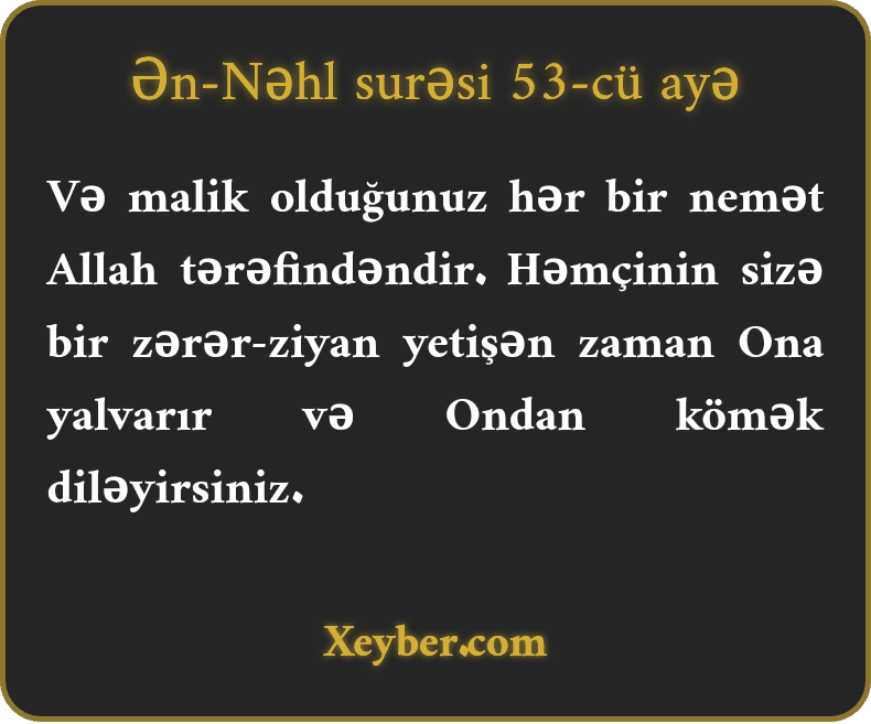 "İxtiyarınızda olan bütün nemətlər Allahdandır. Əgər bir nigarançılıq və ya bəlaya düçar olsanız, yalnız Ona yalvarasınız.”