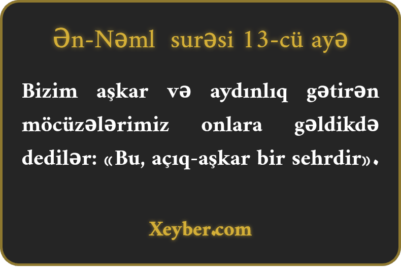 Bizim aşkar və aydınlıq gətirən möcüzələrimiz onlara gəldikdə dedilər: «Bu, açıq-aşkar bir sehrdir».