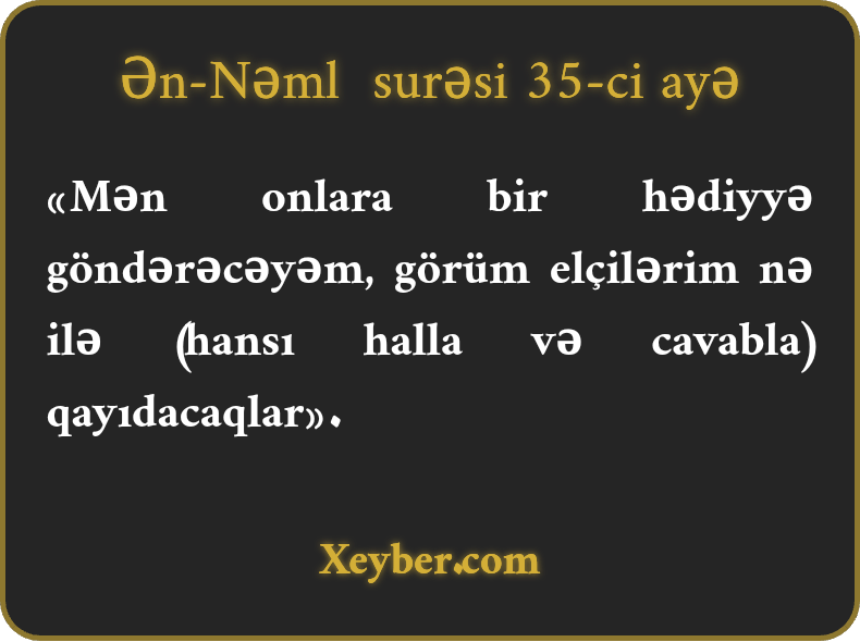 «Mən onlara bir hədiyyə göndərəcəyəm, görüm elçilərim nə ilə (hansı halla və cavabla) qayıdacaqlar».