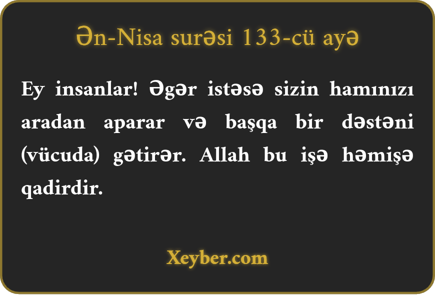 NUR TƏFSİRİ: Ən-Nisa surəsi / ayə 133