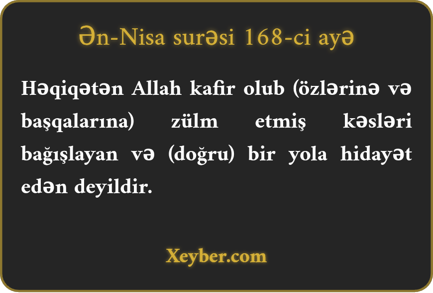 "Həqiqətən, kafir olub, zülm edən kəsləri Allah bağışlamaq və bir yola hidayət etmək fikrində deyil.”