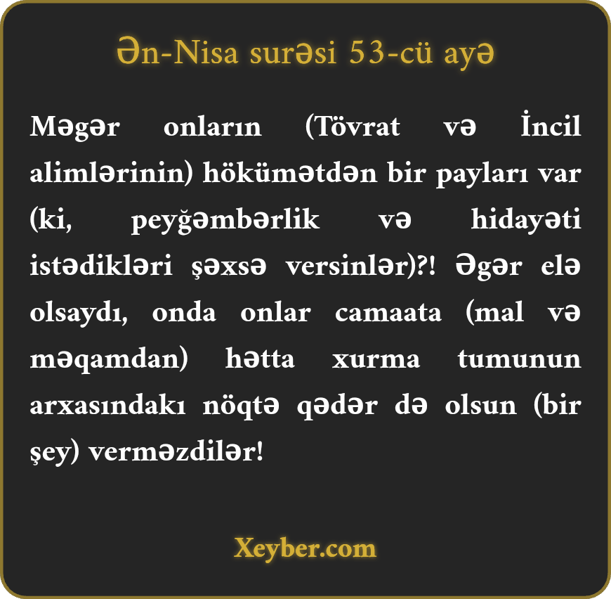 NUR TƏFSİRİ: Ən-Nisa surəsi / ayə 53