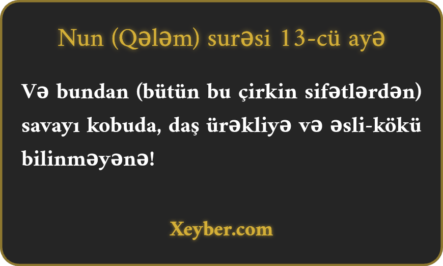 Nun (Qələm) surəsi 13-cü Ayəsinin Təfsirləri