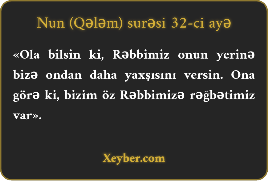 «Ola bilsin ki, Rəbbimiz onun yerinə bizə ondan daha yaxşısını versin. Ona görə ki, bizim öz Rəbbimizə rəğbətimiz var».
