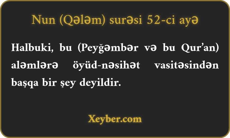 Halbuki, bu (Peyğəmbər və bu Qur’an) aləmlərə öyüd-nəsihət vasitəsindən başqa bir şey deyildir.