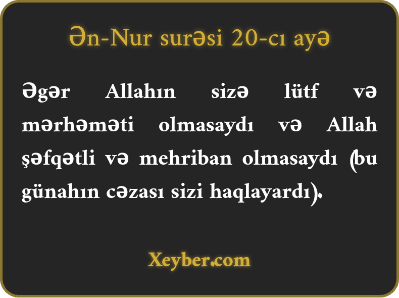 Əgər Allahın sizə lütf və mərhəməti olmasaydı və Allah şəfqətli və mehriban olmasaydı (bu günahın cəzası sizi haqlayardı).