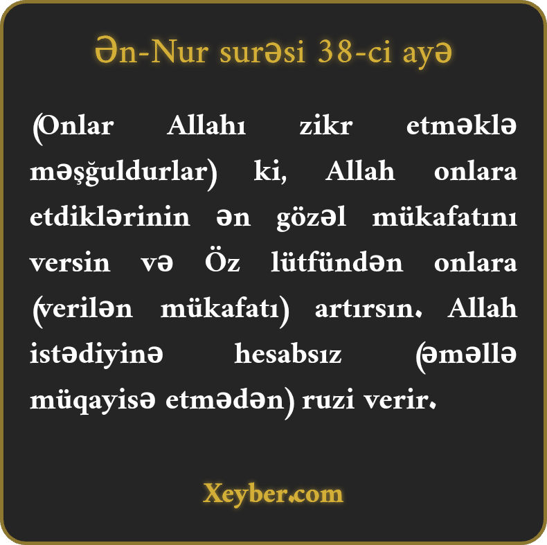 (Onlar Allahı zikr etməklə məşğuldurlar) ki, Allah onlara etdiklərinin ən gözəl mükafatını versin və Öz lütfündən onlara (verilən mükafatı) artırsın. Allah istədiyinə hesabsız (əməllə müqayisə etmədən) ruzi verir.