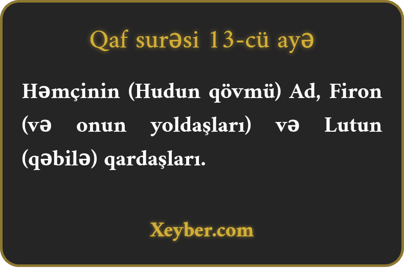 Həmçinin (Hudun qövmü) Ad, Firon (və onun yoldaşları) və Lutun (qəbilə) qardaşları.