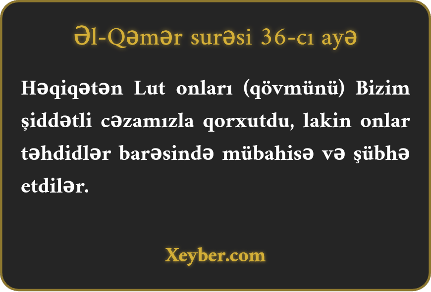 Həqiqətən Lut onları (qövmünü) Bizim şiddətli cəzamızla qorxutdu, lakin onlar təhdidlər barəsində mübahisə və şübhə etdilər.